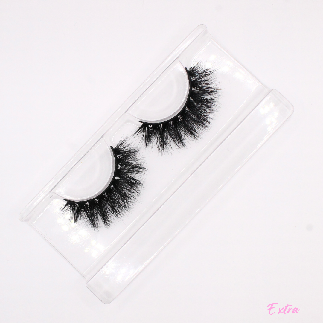 Extra is a full-body, maximum volume 3D mink strip lash that is the perfect finishing touch on a ultra-glam look. The interlacing “V” shaped design of Extra lashes adds natural-looking drama for a full, flirty finish that blends perfectly with your natural lashes.
